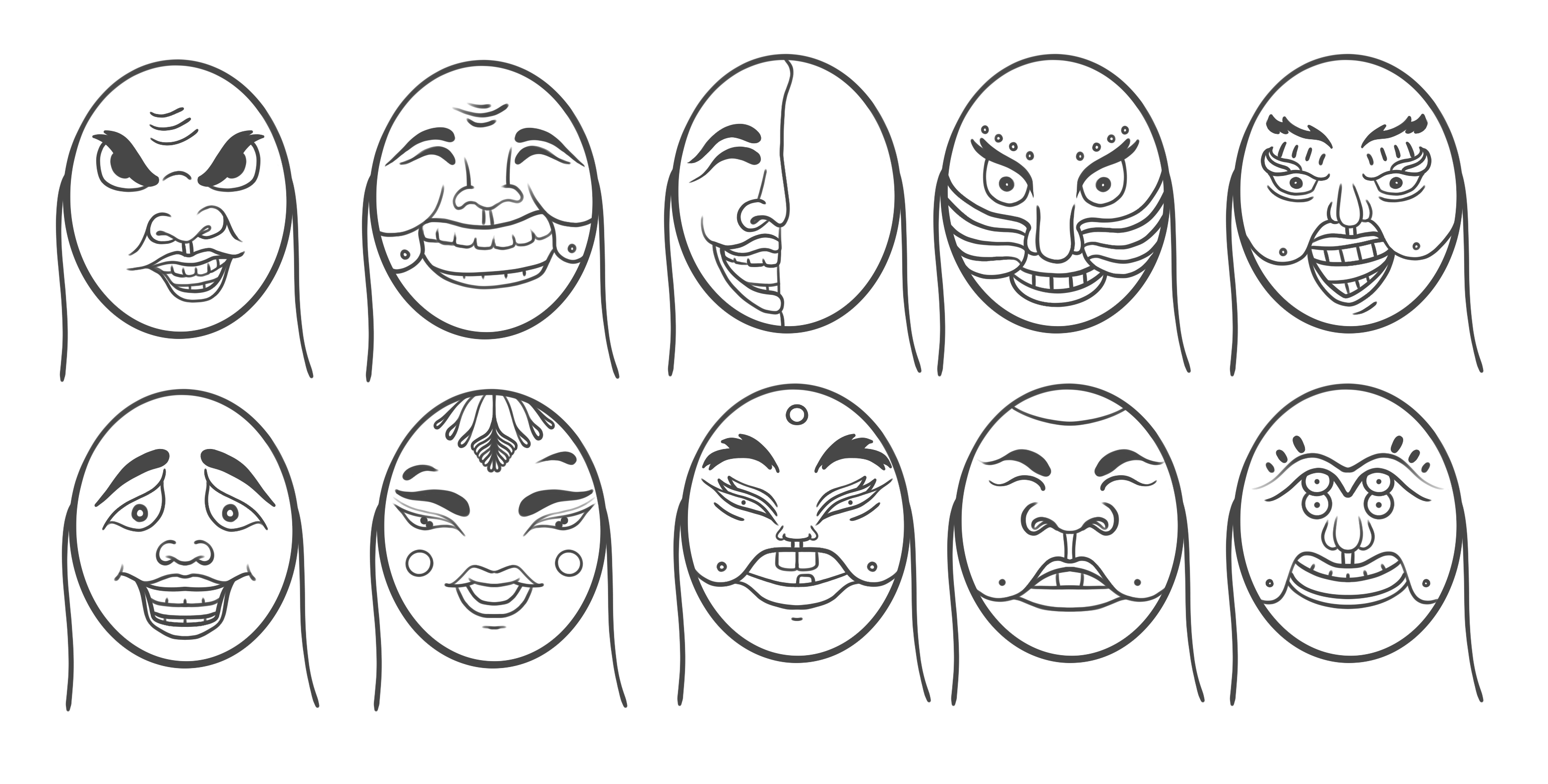 다양한 표정의 가면들 ...